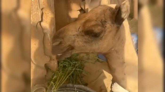 The victim camel can be seen munching food. —Screengrab/Facebook/ CDRSBenjiKarachiShelterTwo suspects admit to crime, says investigation officer.Two axes were recovered from the suspects, says IO.Court remands suspects into police custody for two days.