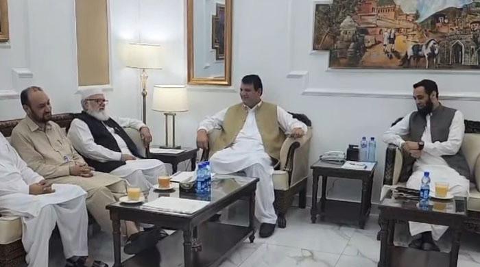 Jamaat-e-Islami delegation meets govt delegation at rawalpindi commissioner's office on July 28,2024. — Screengrab/GeoNews