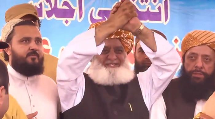 JUI-F Chief Maulana Fazlur Rehman gestures during the party's general council meeting held in Peshawar on September 29, 2024. — Screengrab via X/juipakofficial