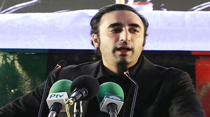PPP Chairman Bilawal Bhutto-Zardari addresses public gathering in Garhi Khuda Bakhsh on the 17th death anniversary of former prime minister Benazir Bhutto on December 27, 2024. — Geo News/ Screengrab