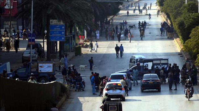 Activists of MWM have blocked a road at Colony Gate located on Sharea Faisal in Karachi on December 27, 2024. — PPICentral protest staged at Numaish Chowrangi, say traffic police.Traffic on blocked roads being diverted through alternative routes.Sindh governor dispatches helicopter...