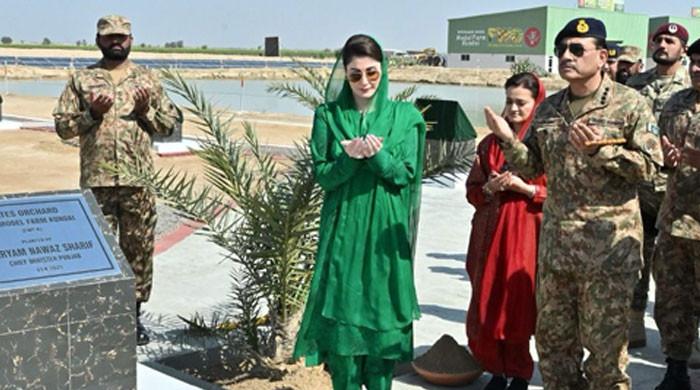 COAS General Asim Munir pictured alongside Punjab CM Maryam Nawaz during the launching ceremony of the Green Pakistan Initiative in Cholistan on February 15, 2025. — Geo News