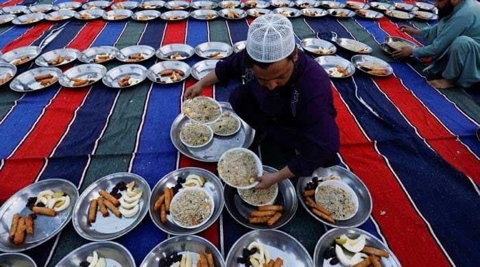A man arranges plates of food for iftar during the fasting month of Ramadan, as the COVID-19 outbreak continues, at a mosque in Karachi, Pakistan, April 14, 2021. — Reuters