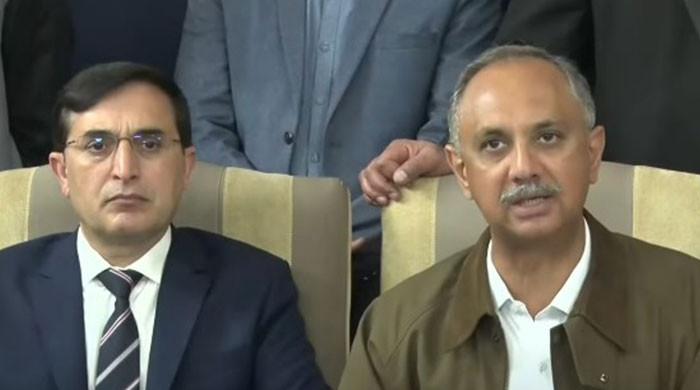 PTI Chairman Barrister Gohar and NA Opposition Leader Omar Ayub speak to the media during a press conference on February 21, 2025. — Screengrab via Geo NewsPTI takes up human rights issue with CJP Yahya Afridi.Complains of misuse of police in Punjab against them.Also raises issue...