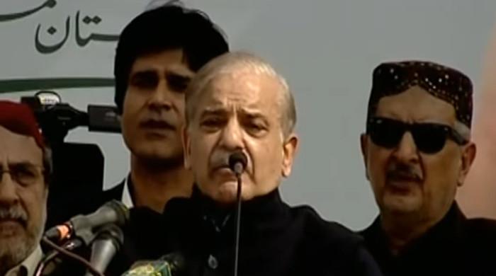 Prime Minister Shehbaz Sharif addresses mass gathering in Dera Ismail Khan on February 22, 2025, in this still taken from a video. — GeoNewsLive/YouTubePM announces cancer hospital in DG Khan, university in Rajanpur.Inflation dropped from 40% to 2.4%, claims Shehbaz...